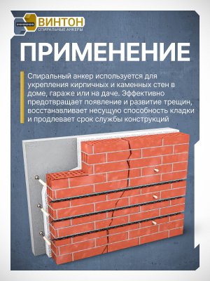 Для трещин 5–10 мм. Стандартный шаг: 3–4 кирпича.